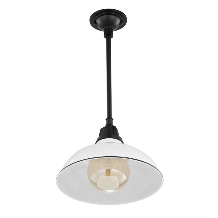 This ceiling light's wide metal shade and two-tone color scheme channels vintage charm in classic white and black