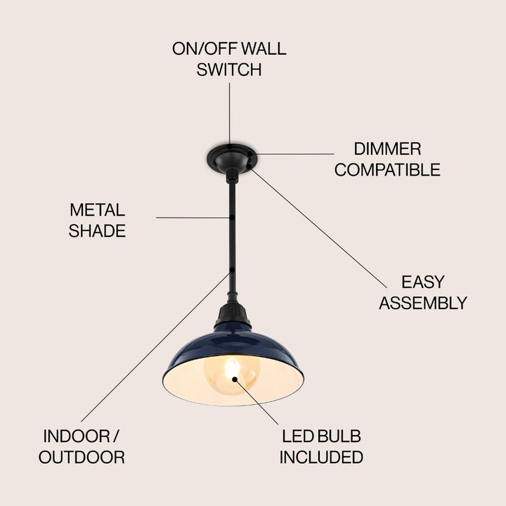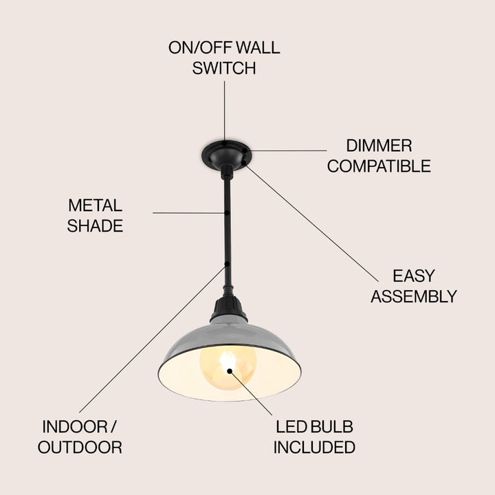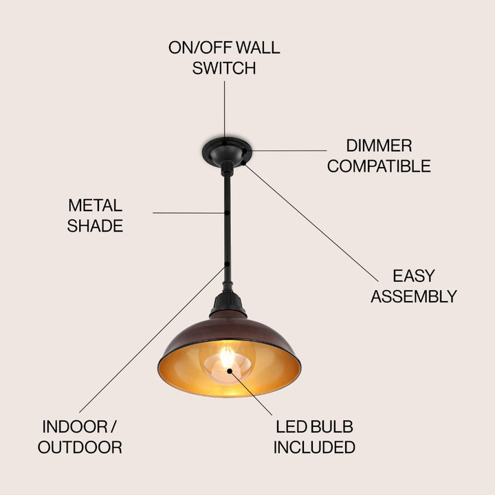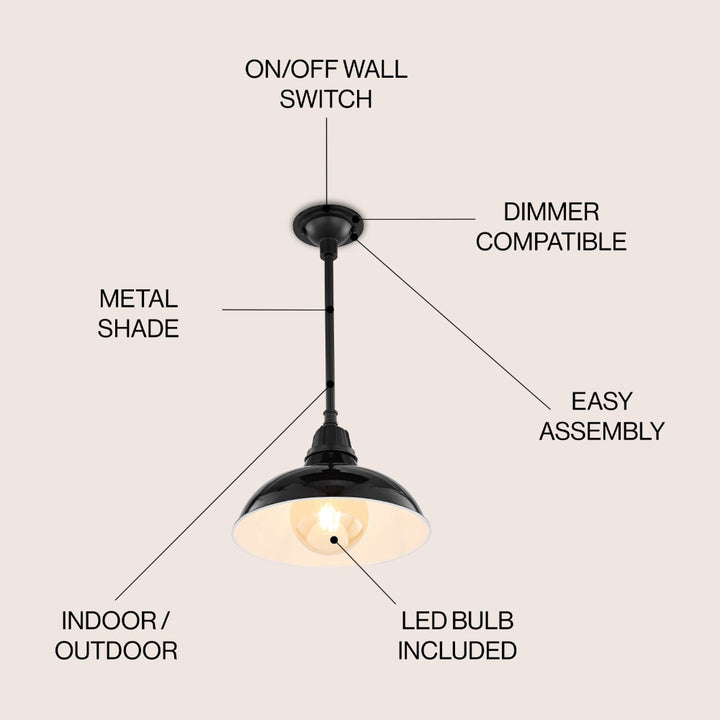 Cottage 12.25" Farmhouse Industrial Indoor/Outdoor Iron LED Pendant