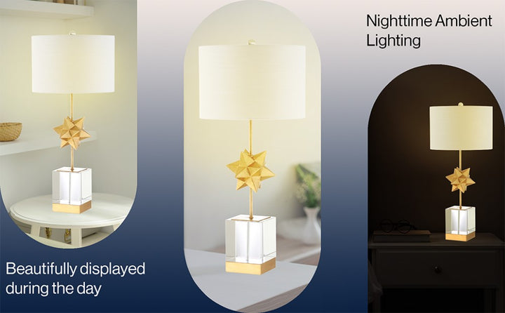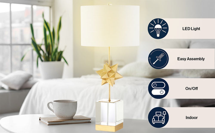 - Add a stellar touch with this gold leaf and crystal table lamp