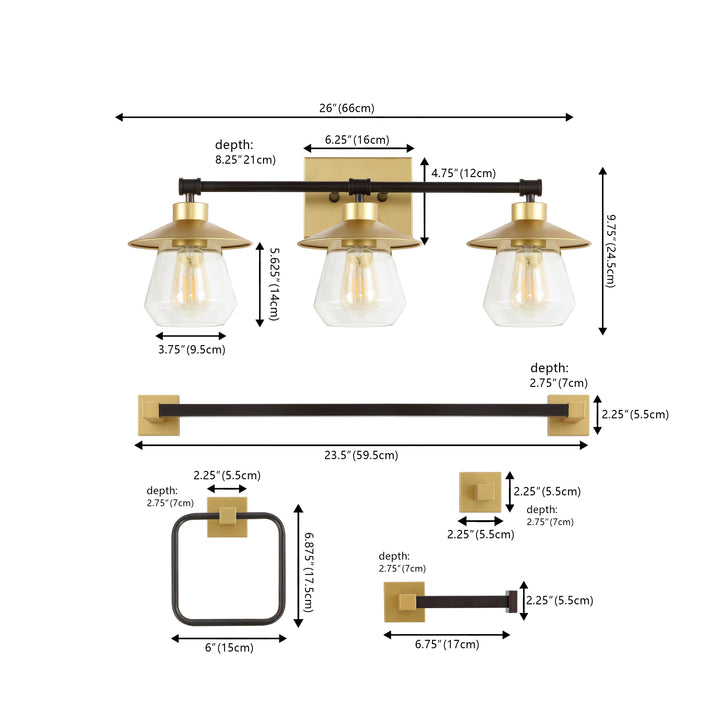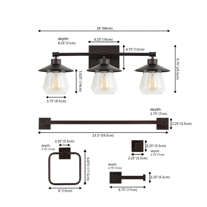 Merbotin 26" 3-Light Farmhouse Cottage Vanity Light with Bathroom Hardware Accessory Set