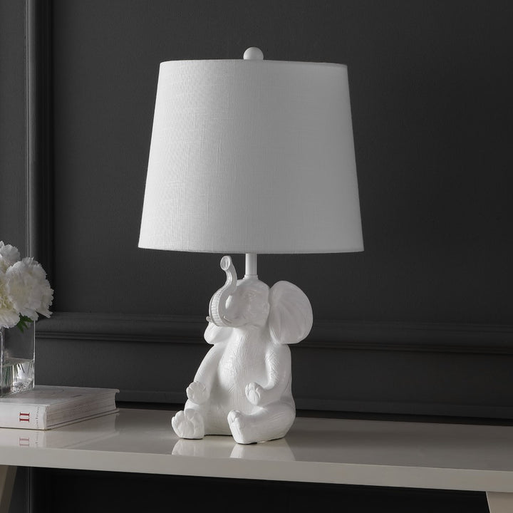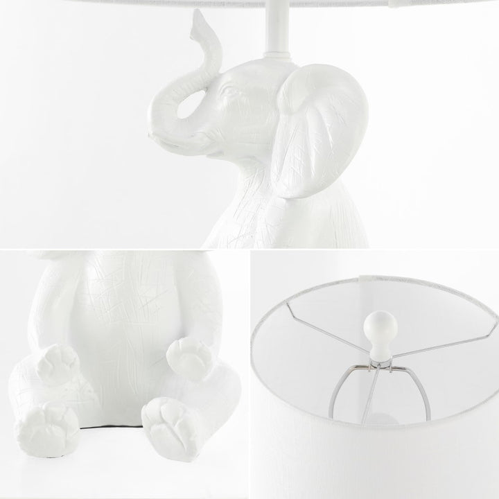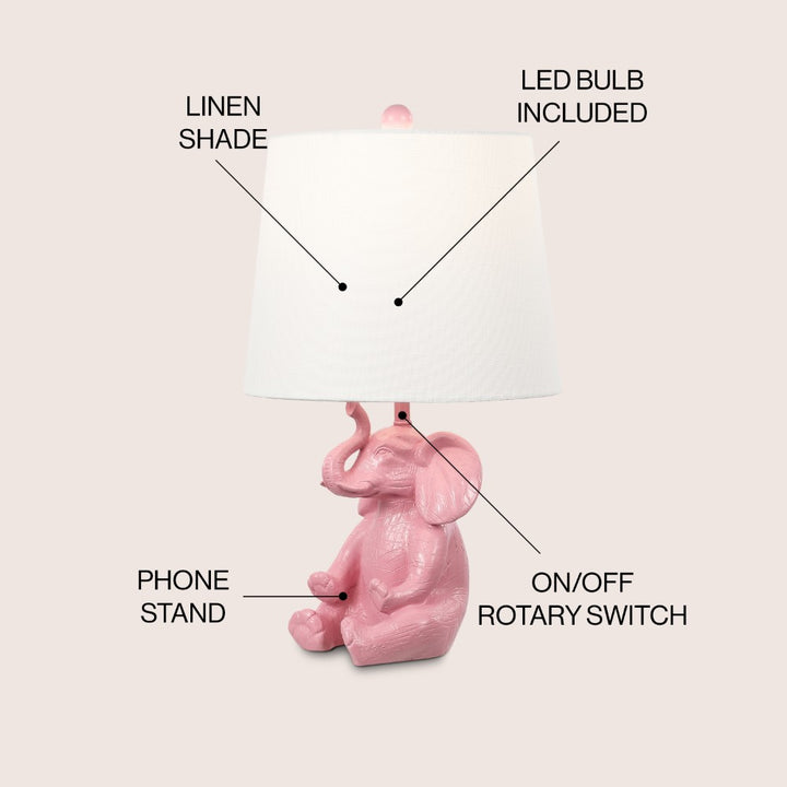 With the trunk raised in a happy salute, our elephant lamp is a modern version of a classic mid-century motif. This charming lamp is the perfect accent for a living room or bedroom. The LED bulb provides plenty of bright reading light.