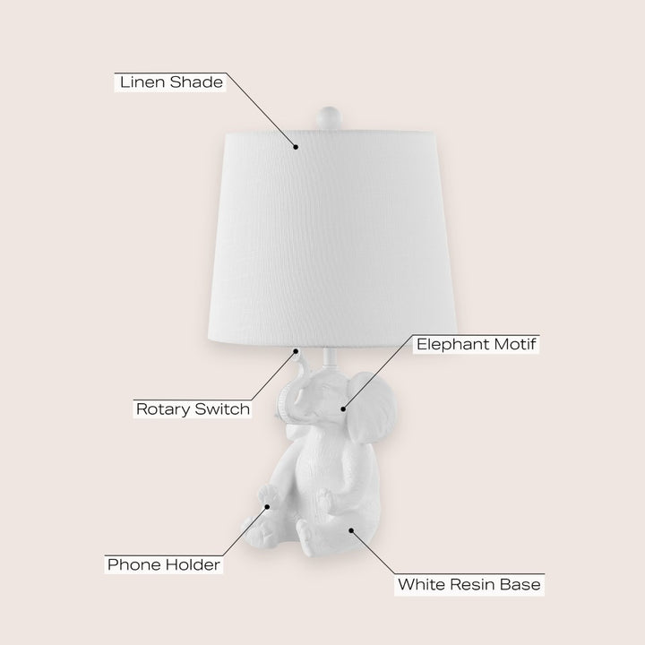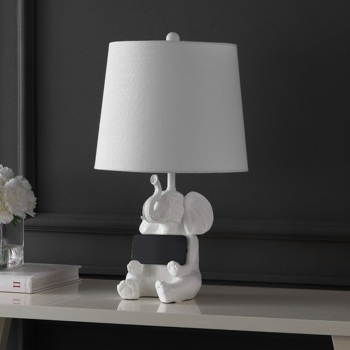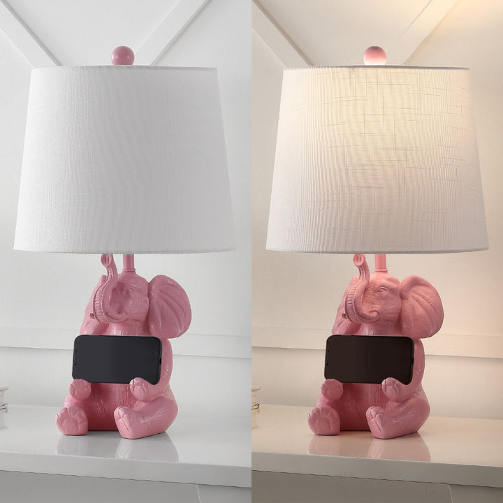 Mercury 21" Modern Shabby Chic Resin/Iron Happy Elephant LED Kids' Table Lamp with Phone Stand