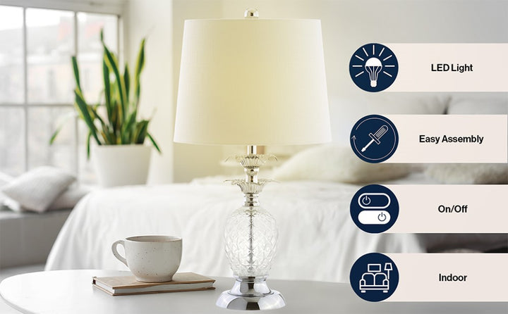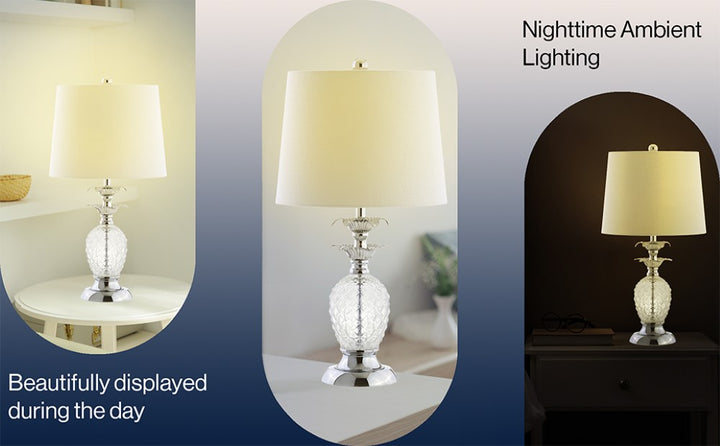 First introduced to Europe in the 1940s, pineapple was served only by affluent hosts who could afford it and determined their guests were worth the expense. In turn, the fruit became a symbol of generosity, hospitality and, of course, wealth. Create a sense of welcome in your home with our glass pineapple lamp trimmed in chrome fittings. And the best part? You wont need to spend a fortune to bring this symbol of warmth into your home.