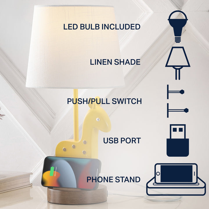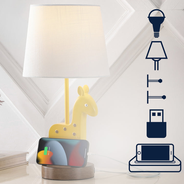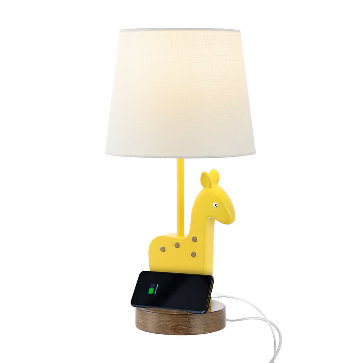 Wooden 17.5" Mid-Century Vintage Iron/Resin Giraffe LED Kids' Table Lamp with Phone Stand and USB Charging Port