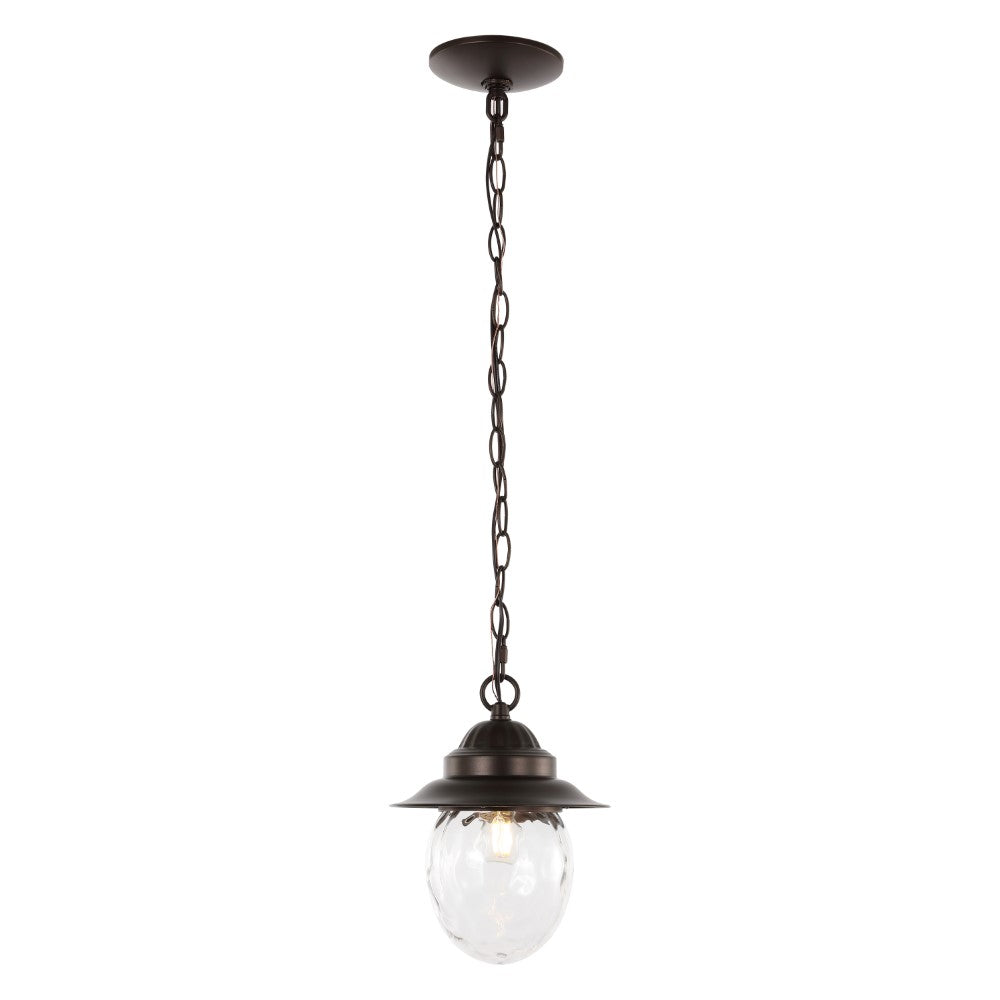 Inspired by coastal and farmhouse lanterns, this small outdoor pendant light is the perfect update for your porch or entry. The vintage style metal shade is accented by a dimpled glass globe for rustic texture. This versatile light fixture adds rustic charm to any style of home, from a modern cottage to a rustic cabin or industrial loft.
